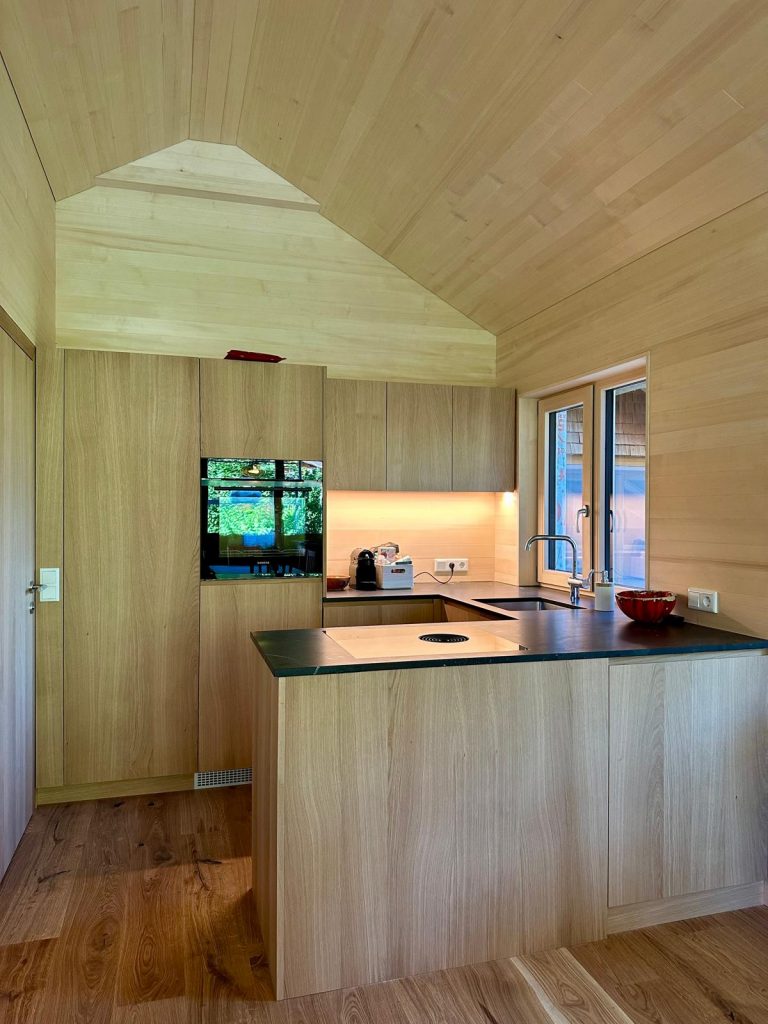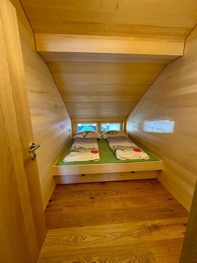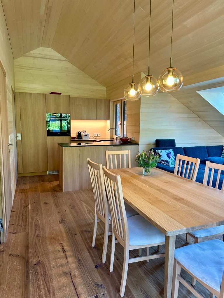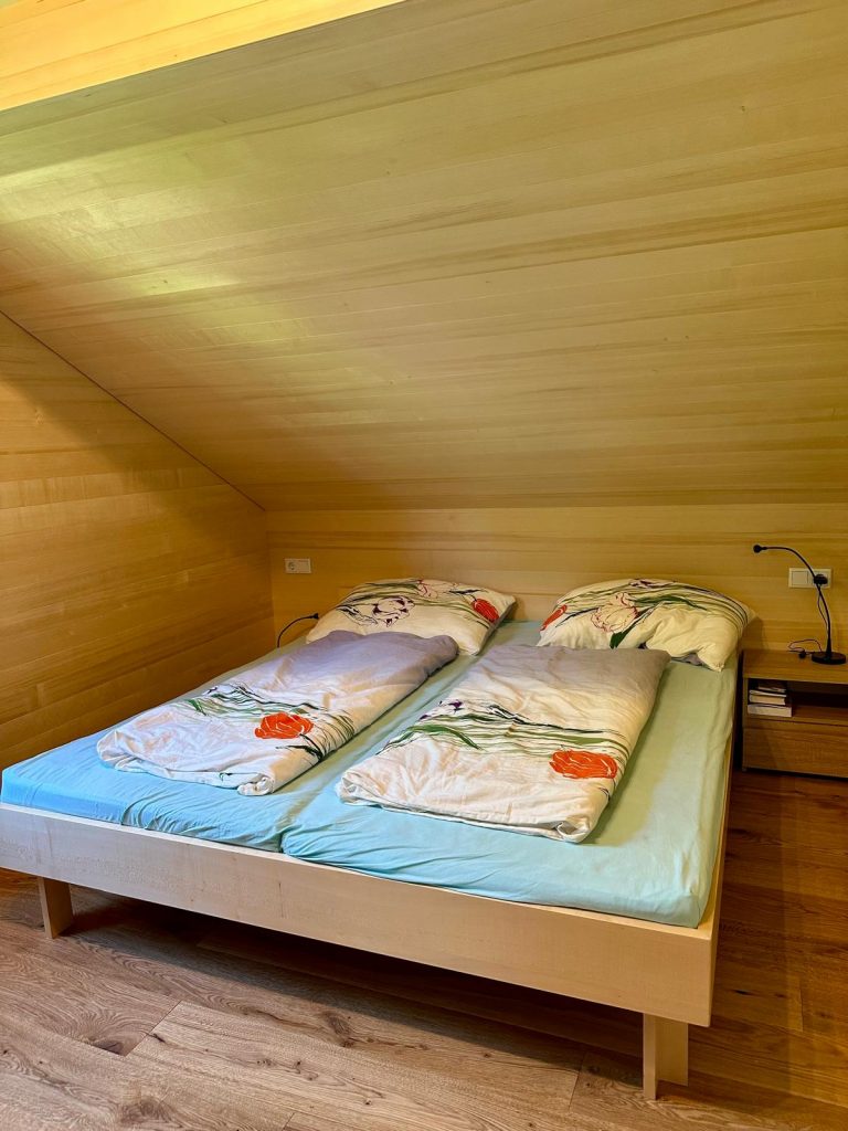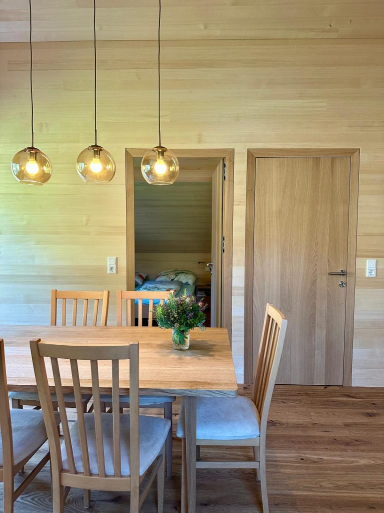 Die liebevoll neu errichtete Ferienwohnung (ca. 52 m2) ganz in Holz ist voll ausgestattet und bietet Platz für bis zu 4 Personen (2 Doppelzimmer). Ihr werdet dort alles finden, was das Herz begehrt – außer einem Fernseher, damit ihr richtig abschalten könnt…